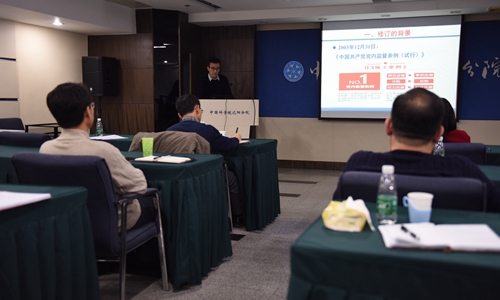 会上,首先由王东升同志作题为《十八届六中全会精神学习体会》的报告,对十八届六中全会审议通过的《关于新形势下党内政治生活的若干准则》和《中国共产党党内监督条例》进行了的讲解,并结合自身工作实践,介绍了如何将促进科技成果转化工作与从严治党要求紧密结合,把全面贯彻落实十八届六中全会精神落在实处的个人学习体会。随后,崔淑霞和刘勇两位同志分别以《关于新形势下党内政治生活的若干准则解读》和《<中国共产党党内监督条例>交流报告》为题作报告。崔淑霞结合个人学习体会强调全体党员应严格党的组织生活制度,保持清正廉洁的政治本色。刘勇通过查阅大量资料,就《条例》修订的背景、原则和过程作了详细说明,并对《条例》部分内容深入讲述了自身的理解和体会。