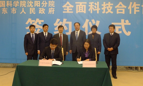 为深入贯彻落实《中共中央 国务院关于全面振兴东北地区等老工业基地的若干意见》,不断提高科技创新在引领丹东新一轮全面振兴中的质量和效益,2月23日,中国科学院沈阳分院与丹东市人民政府在丹东宾馆签署了院市全面科技合作战略协议。中科院沈阳分院院长韩恩厚参加签约仪式并讲话,中科院沈阳分院副院长马越红和丹东市常务副市长何志勇代表院市双方签署协议。参加签约仪式的还有丹东市委书记刘兴伟,市委副书记李刚,市委常委、组织部部长王海东,市委常委、市委秘书长于兵,以及丹东市各县市区、市直有关部门和部分企业的主要负责人。签约仪式由丹东市委副书记李刚主持。