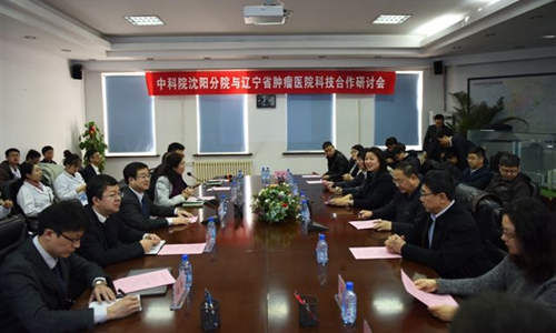2017年3月6日,沈阳分院与辽宁省肿瘤医院共同举办科技合作研讨会。兰州分院、近代物理所、高能物理所、大连化物所、沈阳自动化所等20余位专家参会。会议由辽宁省肿瘤研究所所长、辽宁省肿瘤医院副院长王丹波主持。