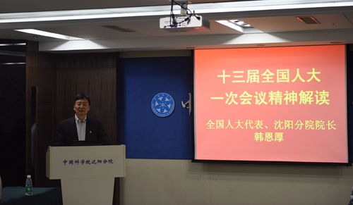 韩恩厚对沈阳分院贯彻落实好会议精神提出五点要求,一要以习近平新时代中国特色社会主义思想为引领,积极落实院党组的工作部署,全面做好分院系统的工作;二要抓住机遇、锐意改革,全面提升创新能力;三要积极努力,提升自身工作能力,提升整体管理水平;四要增强责任感、使命感、担当精神,推动我院“率先行动”计划的有效实施;五要进一步推进科技成果转化,为辽、鲁两地区域经济社会发展做出更大贡献。