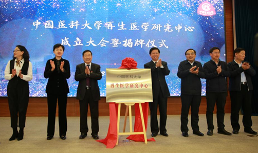 姬兰柱和中国医科大学党委书记朱京海共同为“中国医科大学再生医学研究中心”揭牌。