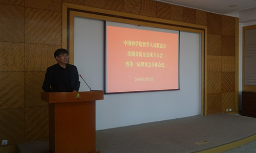 2018年12月12日,中国科学院留学人员联谊会沈阳分院分会第一次理事会全体会议在沈阳召开。沈阳分院分党组书记、副院长姬兰柱,分党组副书记、纪检组组长郭秀银,院长助理、办公室主任杨宏,组织人事处处长曲文生以及系统各单位代表参加会议?;嵋橛晒阋鞒?。