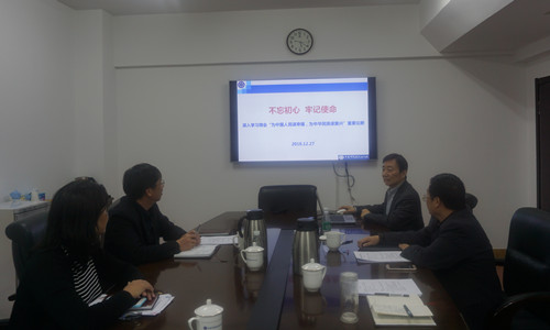 为了深入学习贯彻习近平新时代中国特色社会主义思想和党的十九大精神,按照2018年学习计划要求,12月27日,沈阳分院分党组理论中心组开展了专题学习活动,深入学习领会新时代中国共产党的初心和使命是“为中国人民谋幸福,为中华民族谋复兴”的重要论断。沈阳分院分党组成员、院长韩恩厚以《不忘初心、牢记使命》为题做了专题报告。分党组书记、副院长姬兰柱,分党组成员、副院长马越红,分党组副书记、纪检组组长郭秀银参加了学习会议?;嵋橛杉Ю贾鞒?。