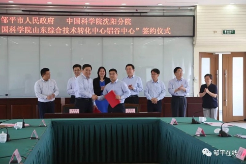 近年来,邹平市着力打造铝产业集群,已成为滨州市世界高端铝业基地的核心区。沈阳分院高度重视与邹平市的科技合作,推动了金属所与西王特钢的合作,打造出极具示范效应的西王合作模式,并先后推动了院属单位与邹平高新铝电、开泰集团、三星裕航等企业的项目合作,在邹平市建立了良好的合作基础。“铝谷中心” 是沈阳分院与地方政府共建的首个专业分中心,将重点围绕邹平市及山东省铝产业发展需求,以打造铝行业综合性公共服务平台为目标,与中科院加强全面合作,促进中科院及国内外相关科研院所机构的科技成果在邹平市及山东省的转移转化。
