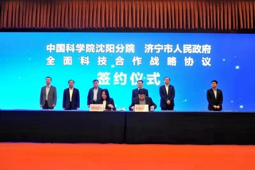 会上,中科院沈阳分院与济宁市人民政府分别签署了《济宁市人民政府与中国科学院沈阳分院全面科技合作战略协议》、《济宁市人民政府与中国科学院沈阳分院共建中国科学院山东综合技术转化中心济宁中心协议》,马越红与张胜明代表院市双方签字,马越红与石光亮为中科院山东综合技术转化中心济宁中心揭牌。