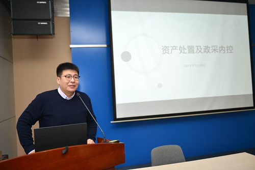 培训会上,院条财局资产财务处马锋老师为与会人员开展了题为“资产处置及政采内控”的培训。各单位围绕资产处置和政府采购内控工作进行了深入交流和热烈讨论,马锋就各单位所遇问题进行了答疑。会后,与会人员对金属所的资产管理工作进行了调研。