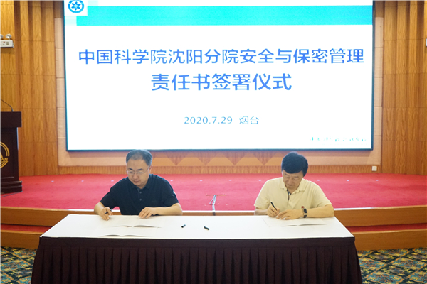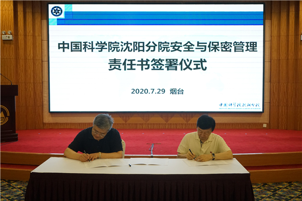 沈阳分院院长韩恩厚与分院系统大连化物所、金属所、沈阳生态所、沈阳自动化所、海洋所、青岛能源所、烟台海岸带所所长以及沈阳计算公司、沈阳科仪公司总经理逐一签署《沈阳分院安全与保密管理责任书》。