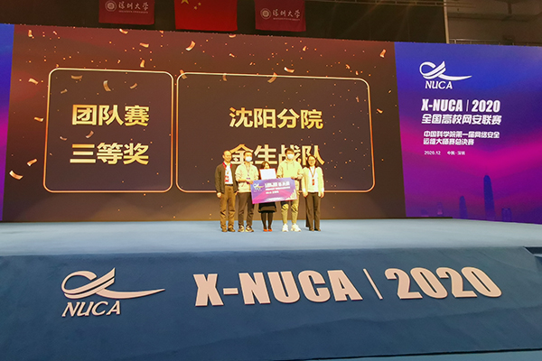 为深入贯彻落实网络强国的战略思想,由中科院办公厅、中科院信工所、深圳科创委主办,深圳大学承办的“2020年全国高校网安联赛暨中国科学院第一届网络安全运维大师赛(X-NUCA’2020)”全国总决赛于12月7至8日在深圳举行。全院18支决赛团队,灵活运用网络安全知识,展现高超解题技巧,经过两天的激烈角逐,沈阳分院的沈阳计算所公司星火战队一队,大连化物所超越战队、沈阳生态所、金属所联合沈阳计算所公司组合的金生战队分别取得总分第一名、第三名、第四名的好成绩,荣获中科院第一届网络安全运维大师赛团队赛一、二、三等奖。沈阳分院刘妍荣获“最佳组织者”奖并发表获奖感言。