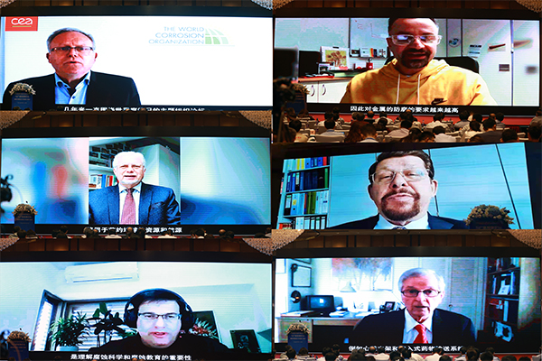 大会还特别邀请世界腐蚀组织主席、欧盟腐蚀协会主席Damien F ron,历任世界腐蚀组织主席Michael Sch tze、Amir Eliezer,国际腐蚀理事会(ICC)主席G nter Schmitt,澳大利亚国立大学工程与计算机科学学院副院长Nick Birbilis,美国人文与科学学院院士、美国工程院院士Ronald Latanision为大会通过视频隔空致辞,共同推动和促进世界腐蚀控制的教育和实践,为取得社会效益与经济效益、节约资源、?;せ肪彻毕琢α?。