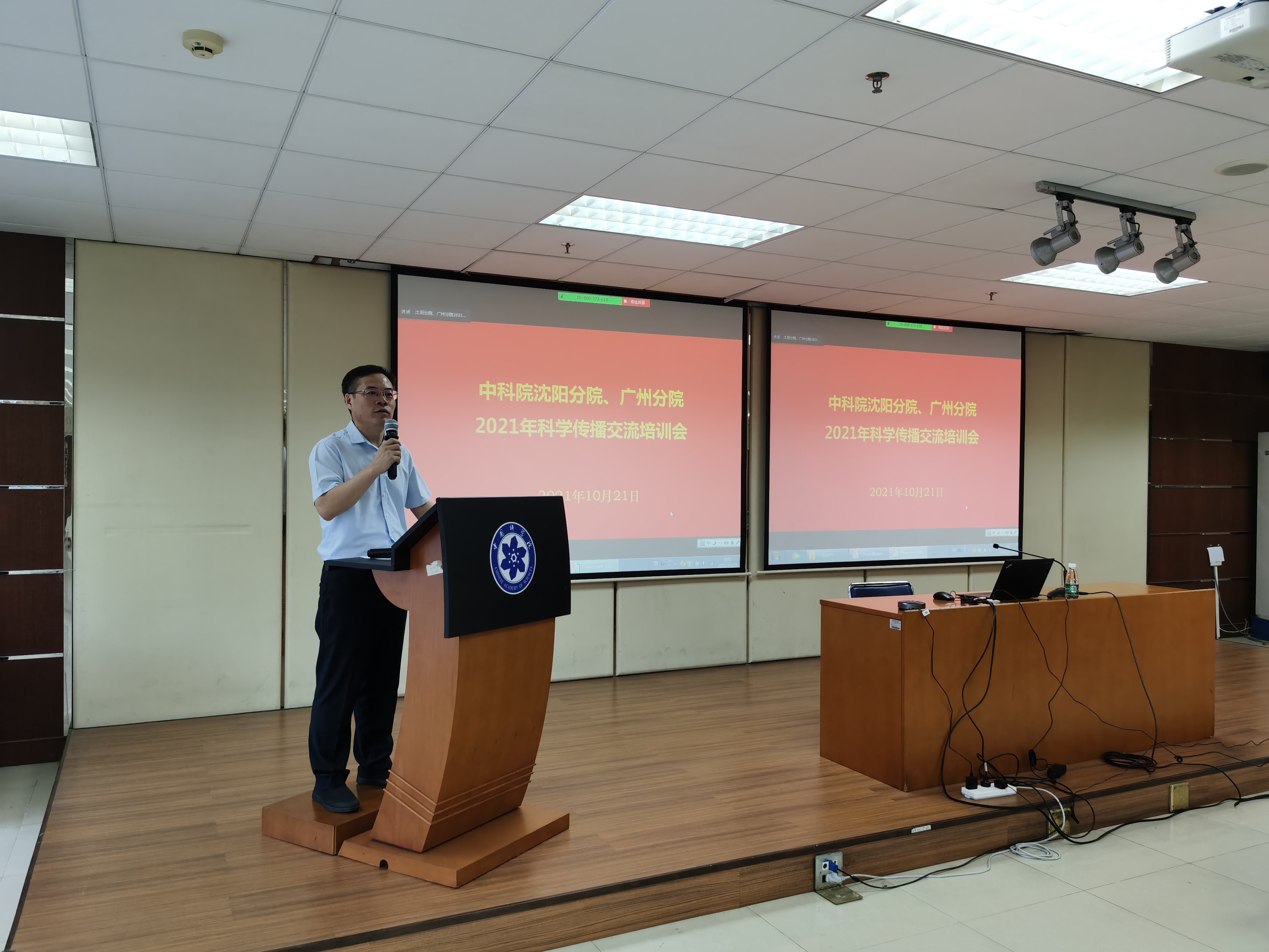 为认真贯彻落实院夏季党组扩大会议关于统筹抓好科学传播和科普工作要求,促进分院之间的学习和交流,加强科学传播队伍建设,提升科学传播工作能力和水平,10月20日至22日,沈阳分院、广州分院联合举办2021年科学传播交流培训会,主会场设在广州,其他地区设视频分会场。沈阳分院副院长马越红,广州分院副院长谢昌龙,广州地化所党委副书记李海滨,华南植物园党委副书记徐海,沈阳分院、广州分院系统各单位科学传播工作部门负责人及业务骨干共62人参会。会议分别由广州分院办公室副主任李晓静,沈阳分院办公室副主任刘妍、党群工作处副处长刘旭东及华南植物园综合办副主任黄瑞兰主持。