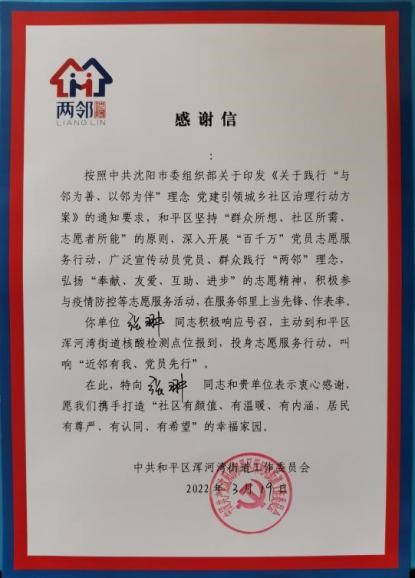 沈阳分院系统各单位的广大党员干部冲锋奋战在抗疫志愿服务的最前线,让党旗在基层一线高高飘扬,做疫情防控中最闪亮的一抹红,用实际行动诠释着共产党人的初心使命,彰显出共产党人的责任担当。