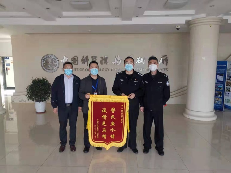 八大关派出所干警赴海洋所送上锦旗表达感谢