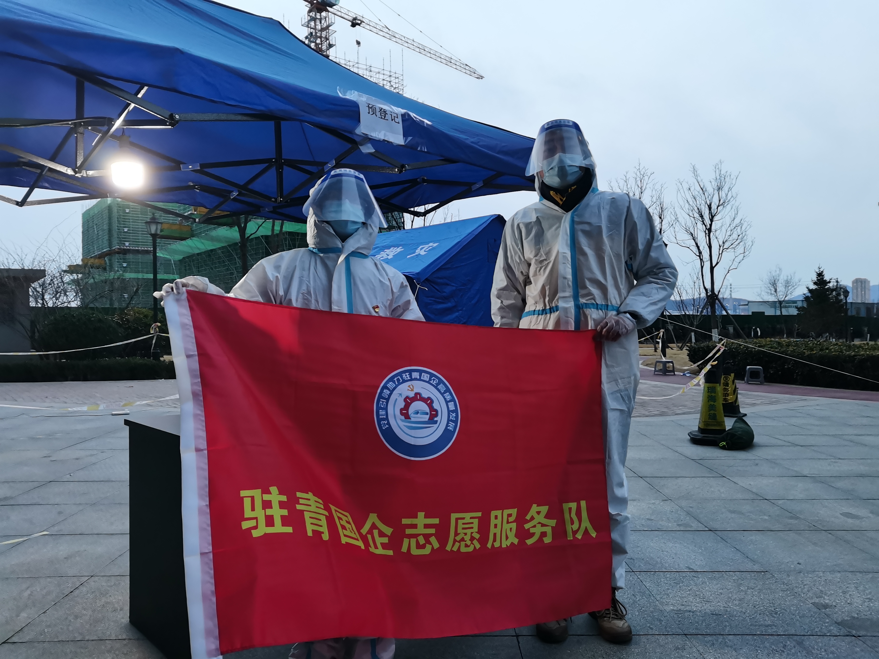 青岛能源所面向各党支部和全体党员征集志愿者参与组建“驻青国企志愿服务队”,到基层一线参与抗疫工作。即使身穿防护服行动不便,但仍热情饱满、披星戴月地参与到防疫工作中去,用行动诠释了党员的责任和担当。