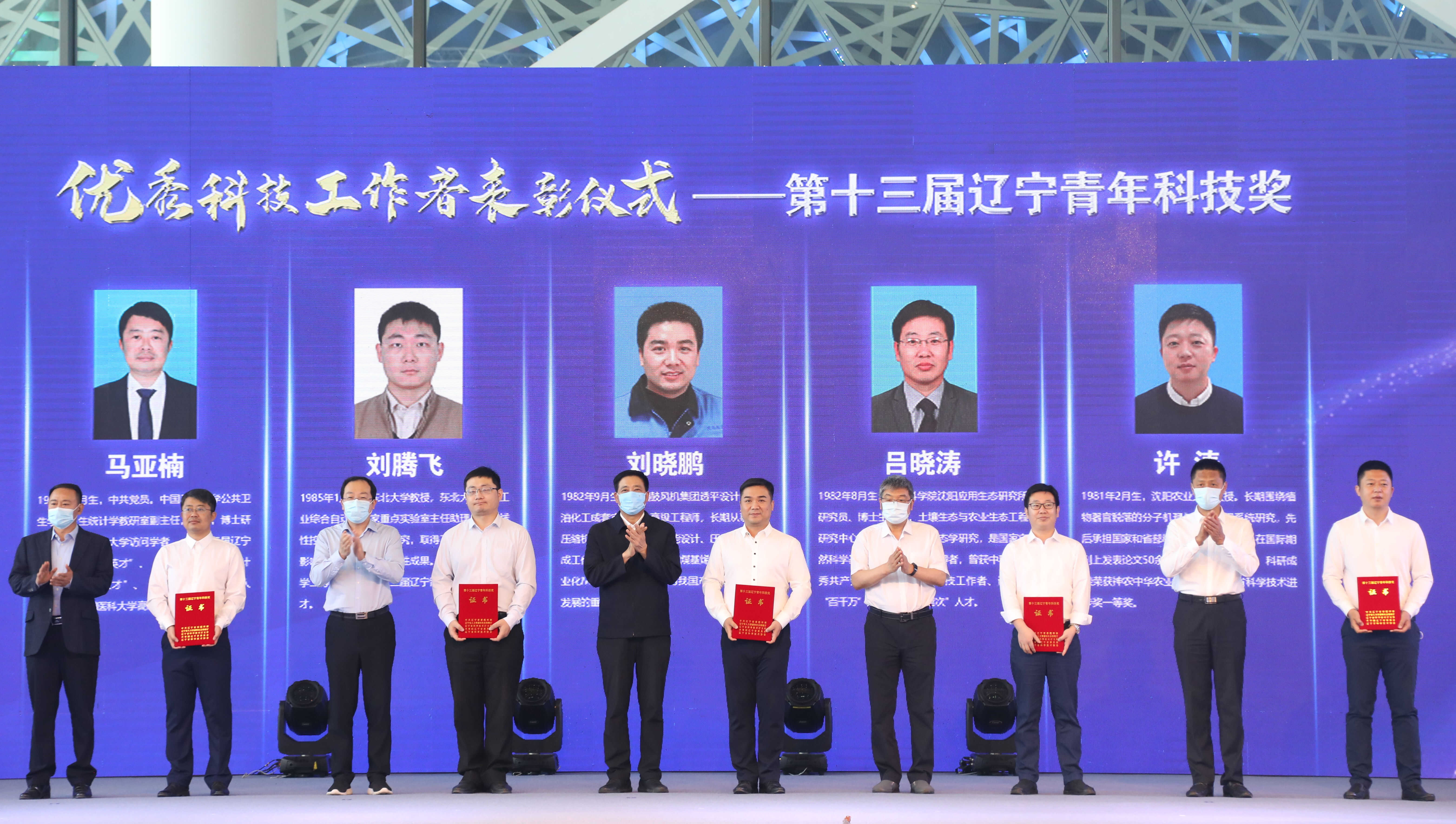 第十三届辽宁青年科技奖获奖者代表(右三-沈阳生态所 吕晓涛)