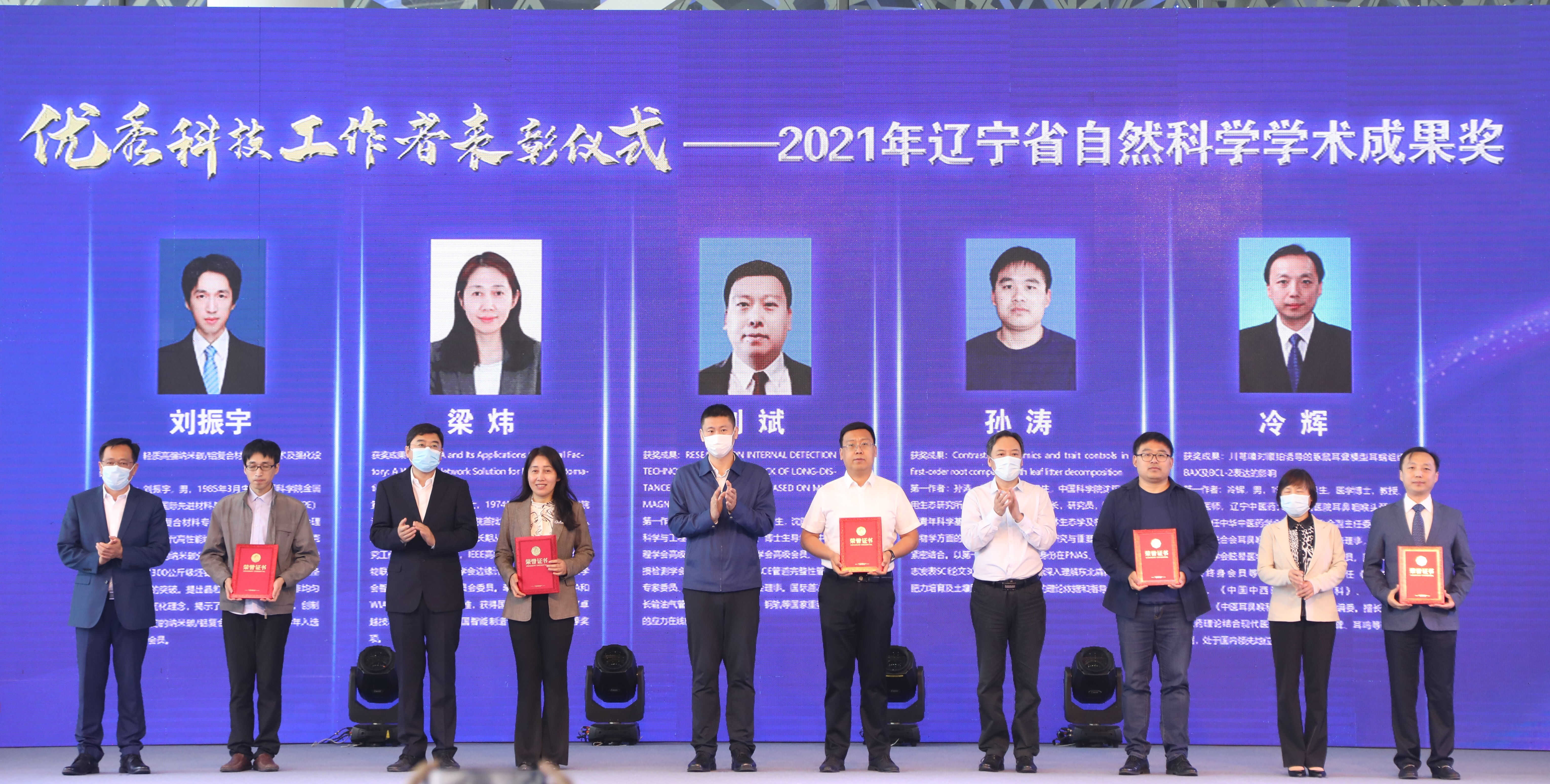 2021年度辽宁省自然科学学术成果奖获奖者代表(左二-金属所 刘振宇,左四-沈阳自动化所 梁炜)