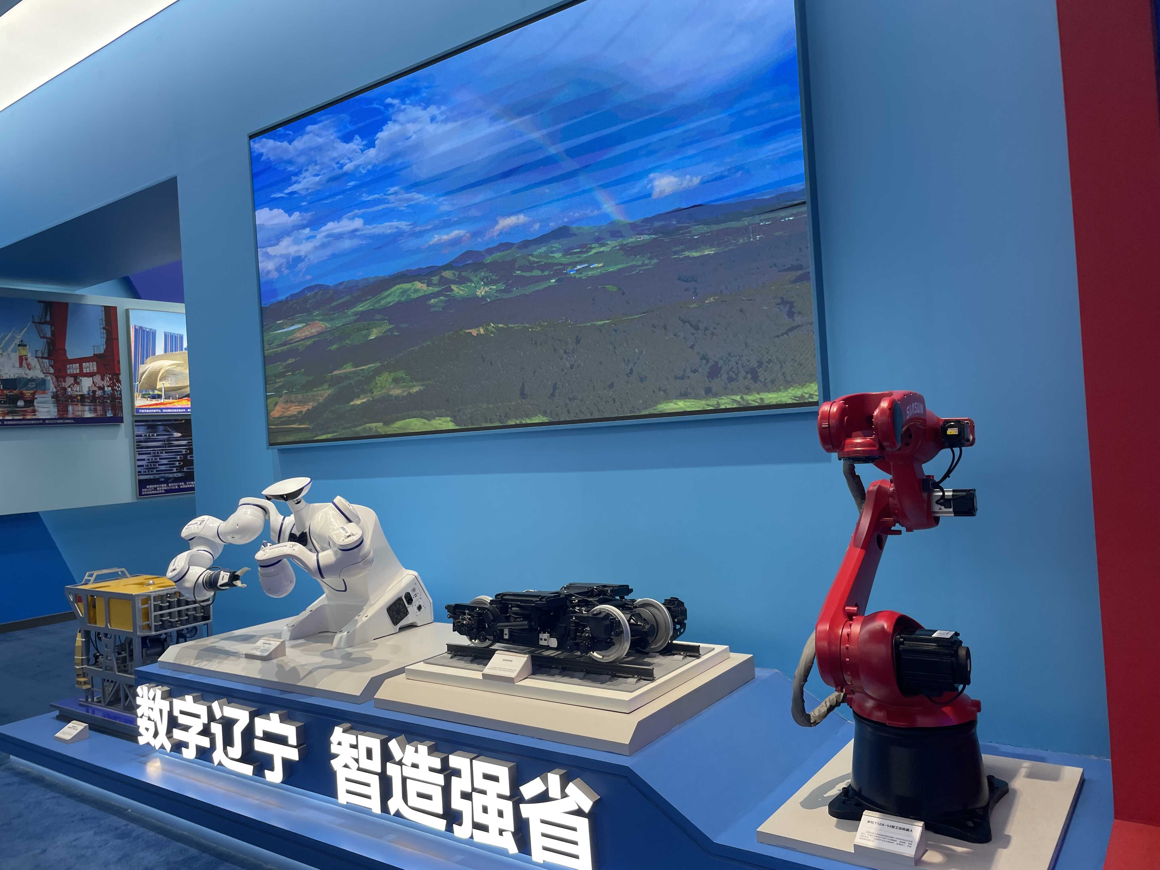 辽宁展区——“海星6000”有缆遥控水下机器人、新松双臂协作机器人、高铁转向架、新松工业机器人(图左及右)