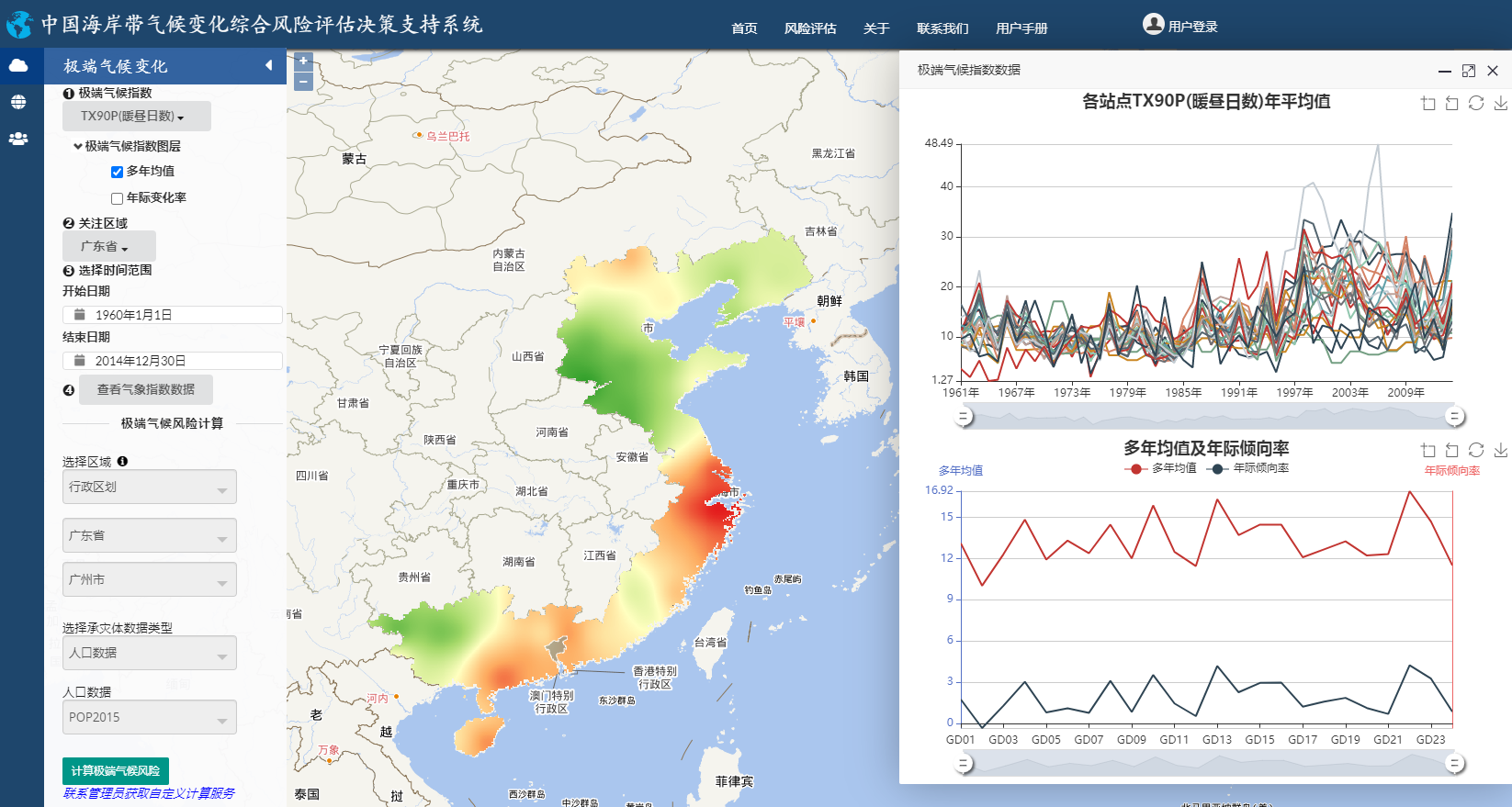 近期,“中国海岸带气候变化综合风险评估决策支持系统”正式上线(http://cra.yic.ac.cn/)。该系统是在中国科学院战略性先导科技专项“地球大数据科学工程”子课题“海岸带气候变化风险综合评估与决策支持系统”(No. XDA19060205)等项目的资助下,由中国科学院烟台海岸带研究所侯西勇研究员团队与计算机网络信息中心罗泽研究员团队合作研发。系统围绕“中国海岸带气候变化风险评估”这一主题,基于遥感大数据、物理海洋模型和GIS空间分析等技术,获得中国沿海区域多源、多要素科学数据,并通过WebGIS技术进行集成和开发,主要功能包括:海岸带多源、多要素时空信息集成与管理,海岸带极端气候变化特征多情景在线分析、结果展示与存贮,海平面上升淹没风险多情景在线分析、结果展示与存贮等。