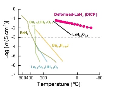 早在上世纪的变色玻璃研究中,研究者就发现氢化镧具有快速的氢迁移能力,但其电子电导也很高。近几年,科研人员往氢化镧晶格中引入氧大幅抑制了其电子传导,但氧的引入也同时显著阻碍了氢负离子的传导。