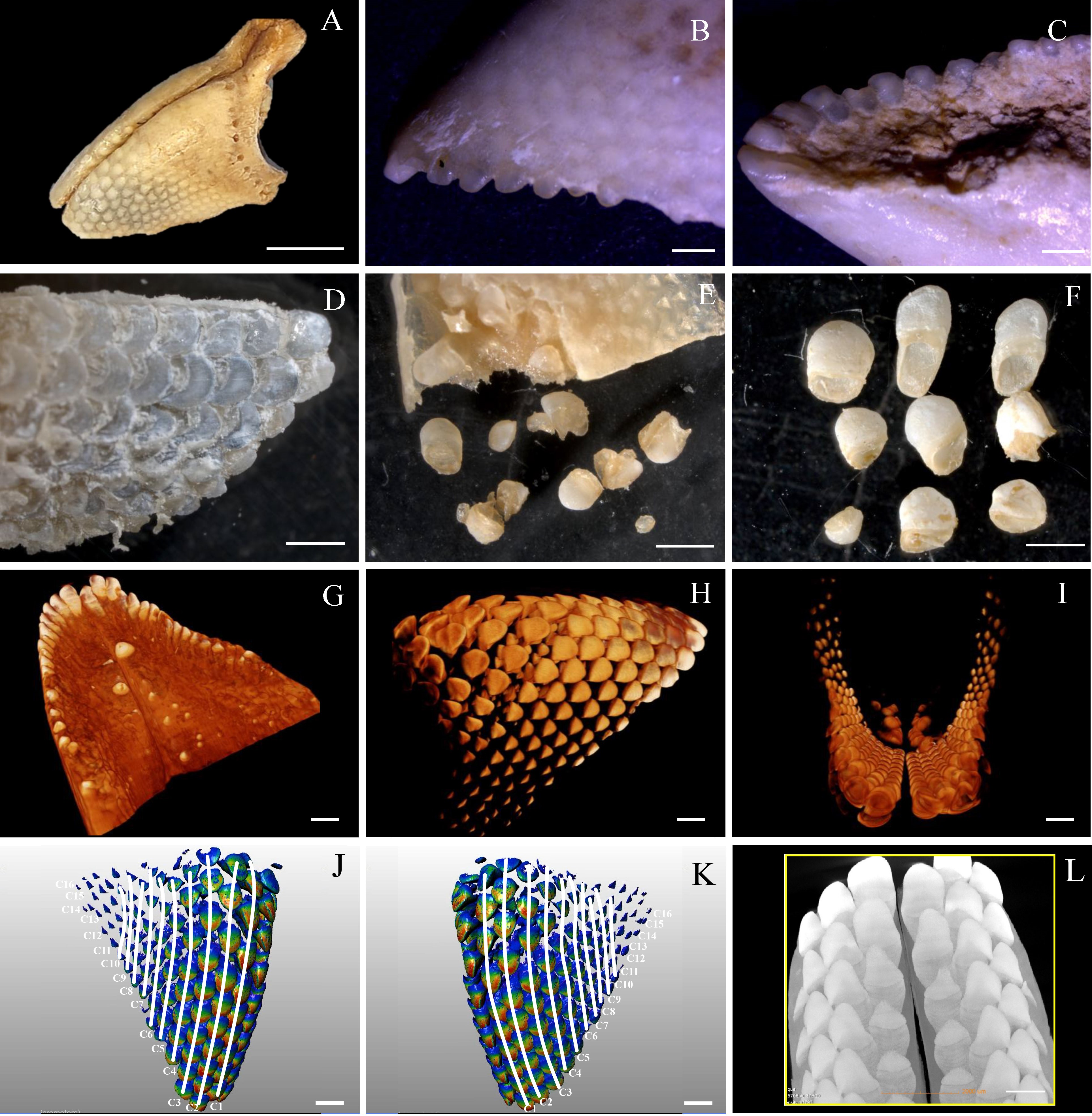 图2 基于micro-CT扫描的斑石鲷喙状愈合齿3D重建