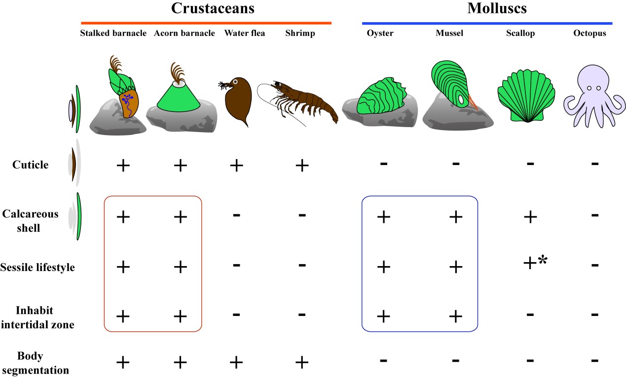 蔓足类和贝类趋同性生物学表型