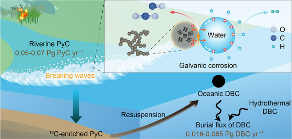 生物质(秸秆、草原、森林等)每年通过不完全燃烧生成约2.6亿吨的碳,其中约三分之一的碳通过河流和大气运输进入海洋,具有巨大的长期碳汇潜力。但是由于在海洋环境中仍存在未知的降解过程,该火成碳对海洋碳汇的贡献还有待进一步研究。理解海水与火成碳之间的化学作用机制,对寻求碳中和的海洋路径具有重要意义。