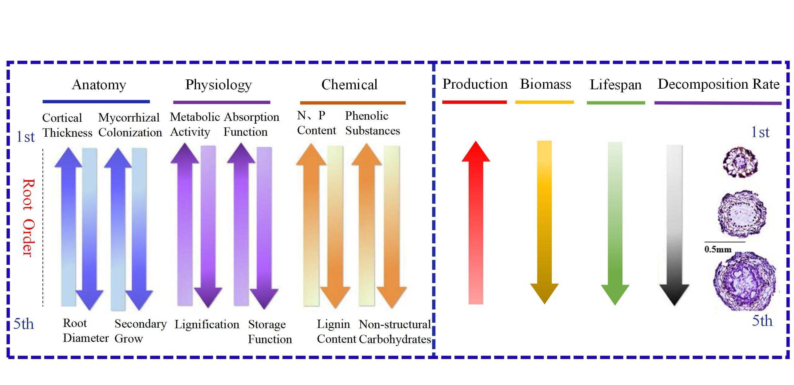 图2 不同分支结构(根序)细根的动力学过程概念框架