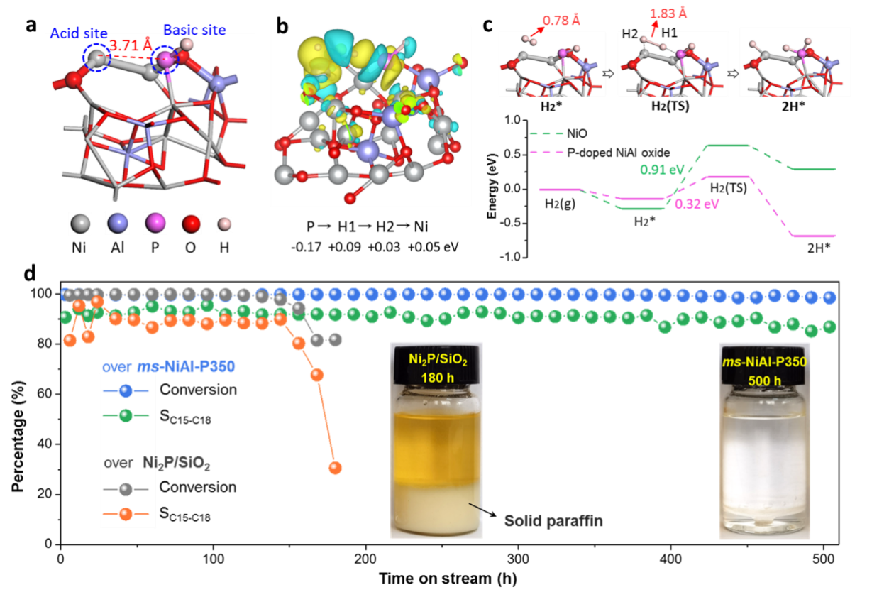 此外,面向实际工业应用,研究组进行了催化剂的批量制备及成型,并验证了成型催化剂在1000 h连续流反应中仍然具有优异的活性及稳定性。该FLPs催化剂在催化活性、稳定性、成本、环保属性等方面均具优势,有望替代商用硫化态催化剂,为绿色柴油产业提供更绿色、更高效的工艺方案。相关研究成果以“Frustrated Lewis pair catalyst realizes efficient green diesel production”为题发表于《Nature Communications》期刊上,这也是Nature系列期刊上首篇关于绿色柴油合成的研究型论文。