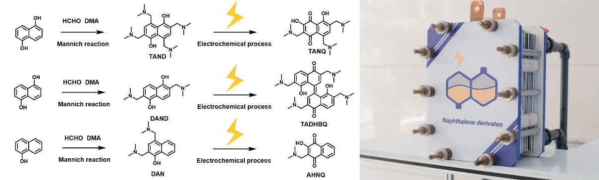 上述成果以“Air-stable naphthalene derivative-based electrolytes for sustainable aqueous flow batteries”为题,于近日发表在《自然-可持续》(Nature Sustainability)上。该成果的共同第一作者为大连化物所联合培养博士研究生赵子铭(已毕业)和李天宇副研究员。上述工作得到国家重点研发计划、国家自然科学基金、辽宁滨海实验室和中国科学院战略性A类先导专项“基于高比例可再生能源的储能关键技术与示范”等项目的支持。