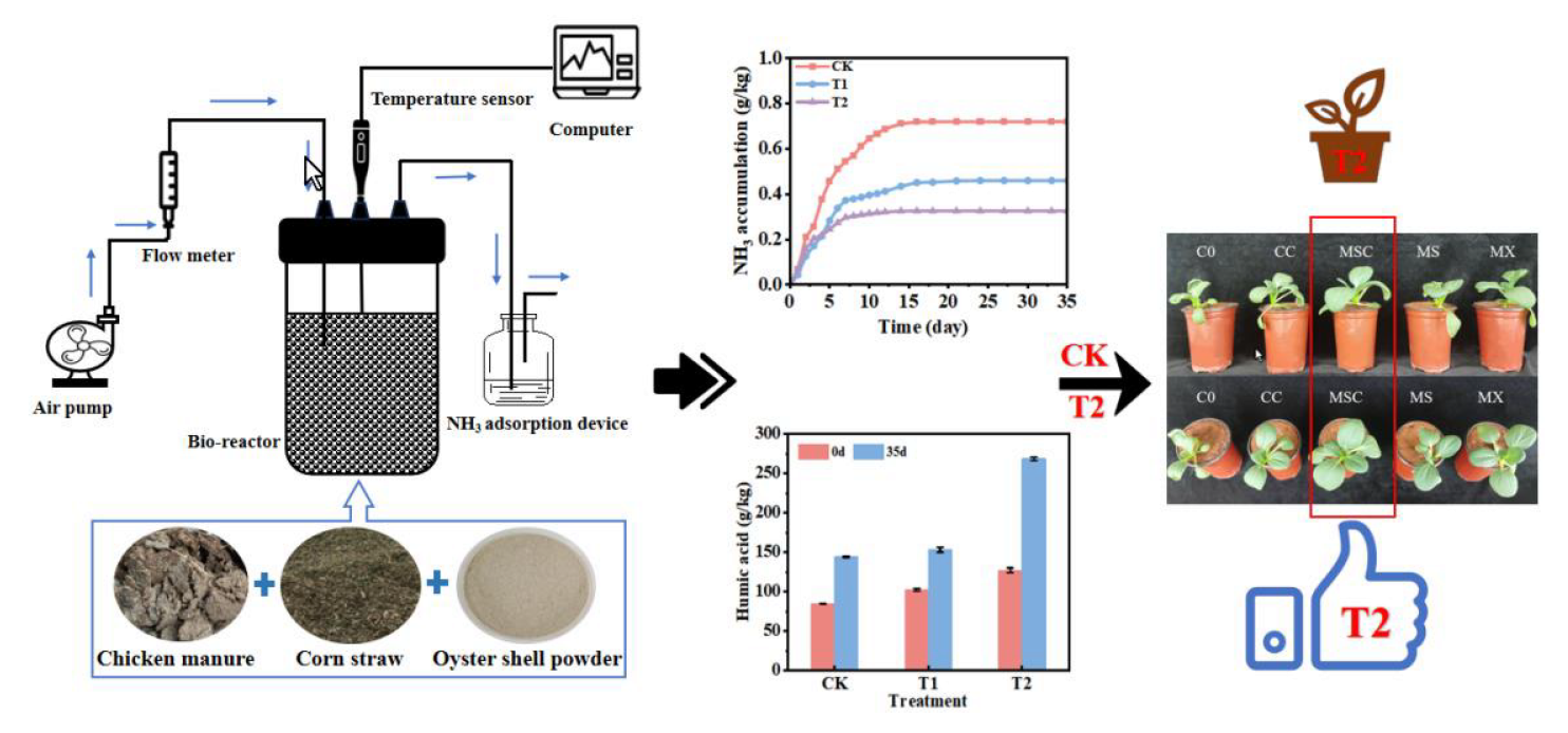 随着全球水产养殖产业的快速发展,每年都会产生大量海藻、牡蛎壳等废弃物。这些废弃物通常被堆放在垃圾填埋场和近海滩涂或直接丢弃到海洋中,对土壤、自然水域及海洋生态系统带来严重的环境影响。为促进水产养殖的可持续发展,中国科学院烟台海岸带研究所冯大伟团队在海藻、牡蛎壳等废弃物资源化利用及其土壤改良技术上取得突破性进展。通过有机-无机共堆肥策略、堆肥过程精细化调控与复合材料应用等措施,大大提升了废弃物资源化利用效率,为生态环境?;び肟沙中┮捣⒄箍倭艘惶跣侣肪丁O喙爻晒⒈碓赪aste Management、Environmental Technology & Innovation、Chemosphere等重要期刊。