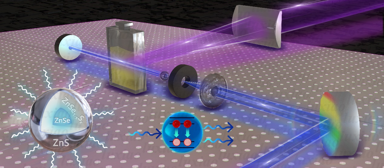 近日,中国科学院大连化学物理研究所化学动力学研究室光电材料动力学研究组研究员吴凯丰与副研究员杨阳团队在胶体量子点激光研究中取得新进展。该团队制备了具有优异光学性能的低毒性蓝光胶体量子点,并以其溶液为光增益介质,实现了高度稳定的液体激光输出。该研究对于推动胶体量子点在激光领域的实际应用具有重要意义。