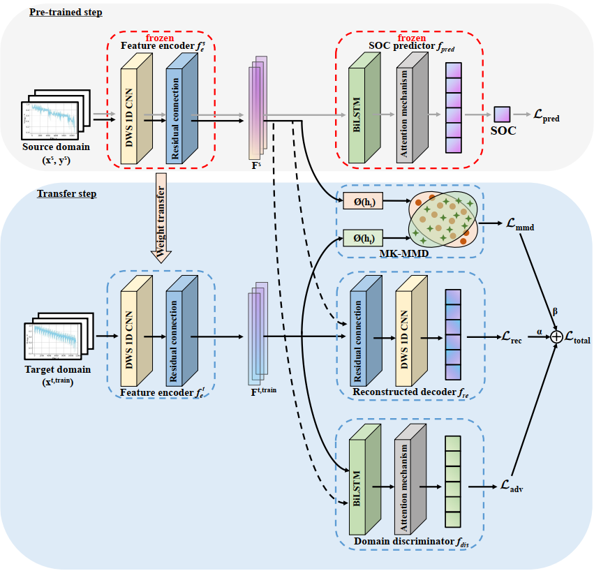 锂电池SOC的准确预测对于电气设备的正常运行至关重要。然而,电池的不一致性和工作条件的变化导致了电池跨域分布存在着明显的差异。此外,收集足够的且带有标签的目标数据也费时费力。