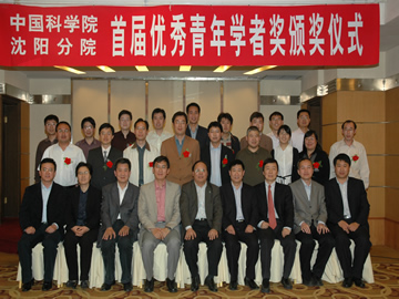 2008年5月22日下午,沈阳分院首届优秀青年学者奖颁奖仪式在沈阳隆重举行。颁奖仪式由副院长韩恩厚同志主持,沈阳分院系统各单位负责人事工作的所领导、处长、获奖人员及35岁以下青年科技人员代表等70余人参加了仪式。