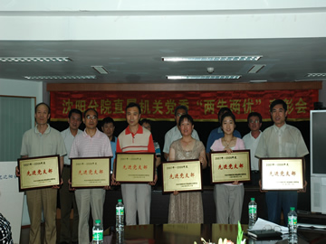 6月27日,沈阳分院直属机关党委隆重召开“两先两优”表彰会,给受到沈阳分院直属机关党委表彰的先进党支部、先进党小组、优秀共产党员、优秀党务工作者颁奖。刘伟、王韫、朱教君、徐岩等四名同志分别代表受到表彰的先进党支部、先进党小组、优秀共产党员、优秀党务工作者在会上发言,表示要保持和发扬荣誉,不断争取更大进步。沈阳分院党组副书记、沈阳分院直属机关党委书记马思在会上就深入学习贯彻党的十七大精神,以改革创新精神做好党建工作,积极推进党内民主、加强党的基层组织建设,注意在优秀青年科学家中发展党员,着力加强反腐倡廉建设等问题发表了讲话.(沈阳分院直属机关党委供稿)