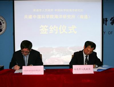 1月11日,南通市人民政府、中国科学院海洋研究所共建中国科学院海洋研究所(南通)签约仪式在青岛举行。南通市副市长徐辉和中科院海洋所所长孙松在协议书上签字,海洋所党委书记王启尧主持会议。