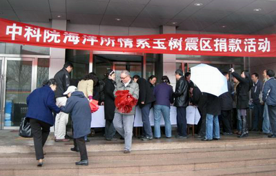 4月21日, 是青海玉树发生7.1级地震一周的日子,正是举国上下哀悼玉树地震遇难同胞的日子,海洋所用最庄严的方式举哀-----举行了“情系玉树震区献爱心”活动,一份份爱心捐款,承载着全所职工和研究生对玉树震区同胞的牵挂与祝福。