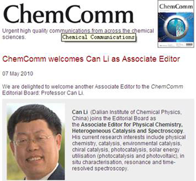 李灿院士出任Chemical Communications副主编