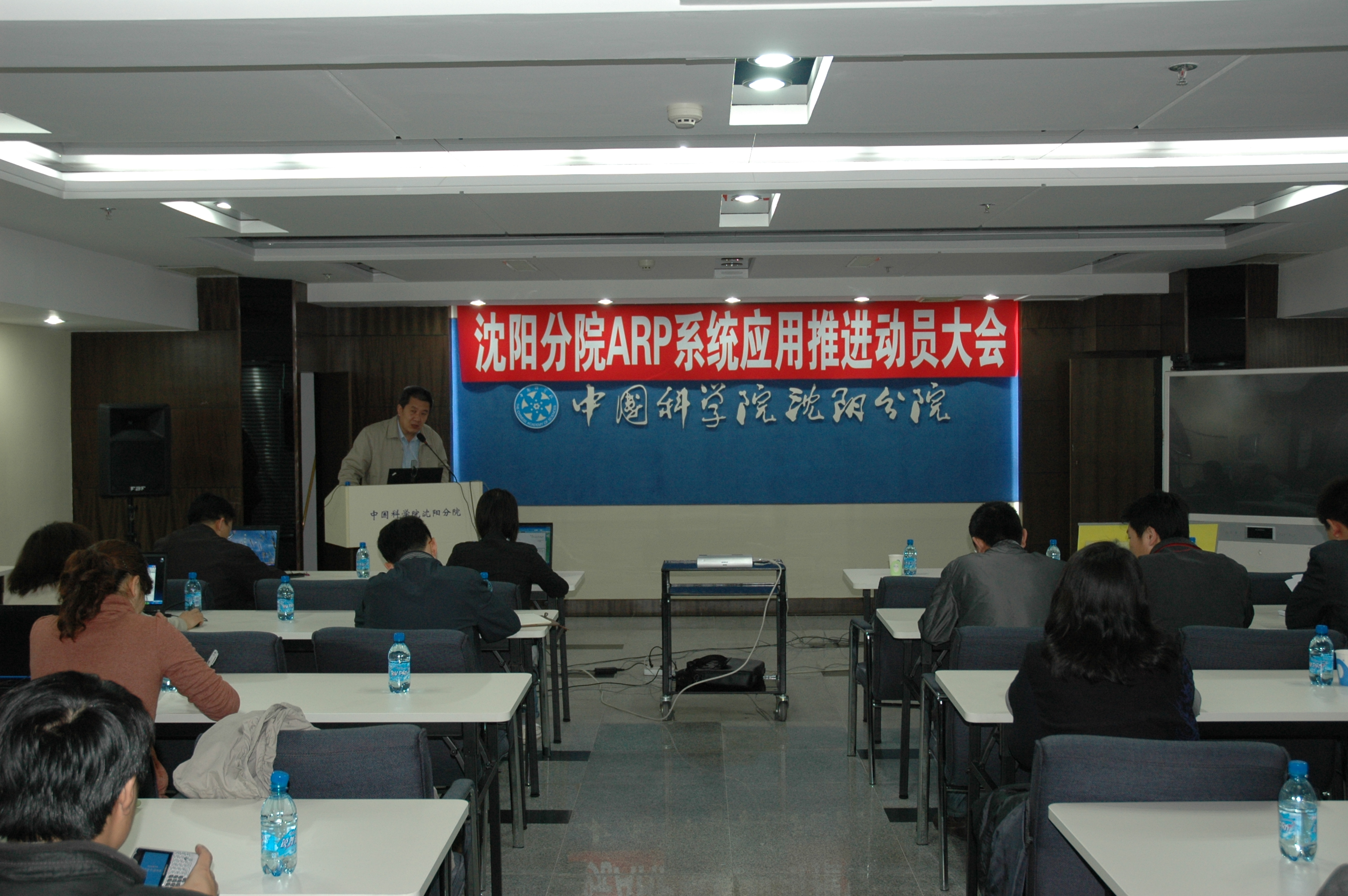 根据院《关于全面启动ARP所级系统V1.3版应用推进工作的通知》要求, 2010年5月18日,沈阳分院组织召开了“ARP所级系统V1.3版”部署启动大会和国际合作、知识产权、人才项目和政府采购??榕嘌祷疃7衷焊餮芯克胺衷夯谹RP协调人、系统统管理员及各模块负责人等40多人参加了会议,分院党组书记、副院长马思到会并做了动员讲话。