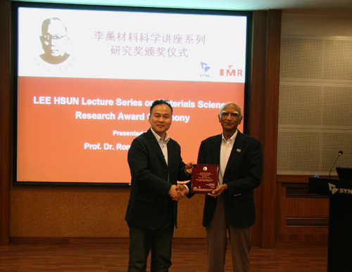 来访期间,Batra教授为金属所科研人员和研究生作了题目为:“Adiabatic Shear Bands in Particulate Composites”、“Strain Localization in Polycarbonates Deformed at High Strain Rates”、“Deduction of Mechanical Properties of Carbon Nanotubes from Molecular Static/Dynamics Simulations”3个精彩学术报告,金属所副所长谭若兵在报告前会见了Batra教授,并为他颁发了李薰研究奖奖牌。来访期间,Batra教授还与金属所材料疲劳与断裂研究部、先进炭材料研究部的科研人员和研究生进行了深入的交流,并参观了沈阳材料科学国家(联合)实验室和钛合金研究部实验室。