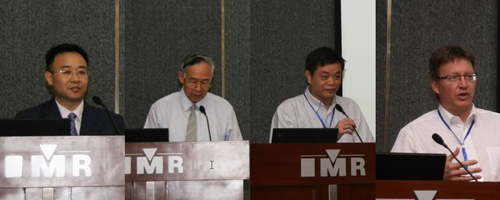 金属所杨锐副所长主持开幕式,叶恒强院士、复旦大学龚新高教授和德国夫琅和费学会材料力学研究所所长Peter Gumbsch先后致辞。