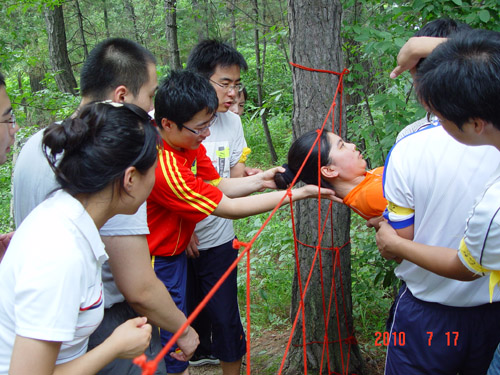 学生干部在培训教练的带领下展开了野外拓展训练。培训项目是从不同的角度来引导大家如何挑战自我,实现与他人的良好沟通、交流、合作,从而提高整个团队的工作效率。48名成员经过通力合作,顺利、快速地翻越毕业墙,完成了全部计划项目。