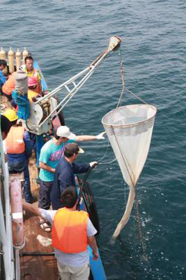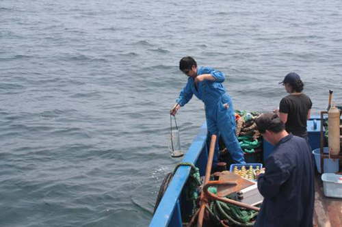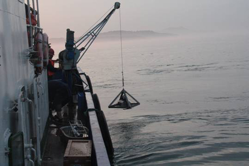 25日早六点,在大雾中,由獐子岛渔业集团“辽长渔科研19”号船搭载着15位科技人员出海执行大连溢油灾害海洋环境调查应急观测任务。当日,完成了5个站位的海洋环境调查和1套定点实时观测海流潜标、1套沉积物捕获器潜标和1套实时漂流浮标系统的布放;26日,完成了4个站位的海洋环境调查和1套定点实时观测海流潜标的布放??萍既嗽泵刻斓鞑槿挝窠崾?,回到驻地后,即进行资料整理和样品初步分析,并将有关数据返回所内,由所内科研人员进行后续数据处理和分析。调查分析报告将及时提供地方政府和企业,为应对突发灾害提供科学依据。