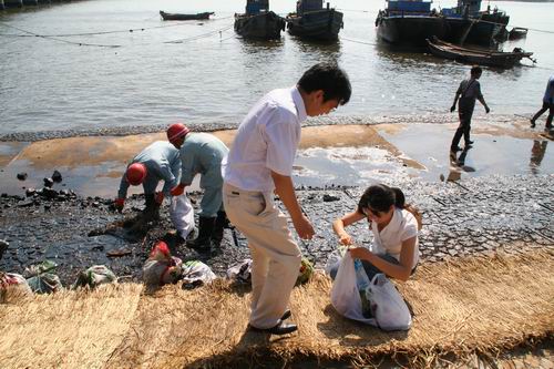 海洋所王凡研究员、长春应化所王丕新研究员、微生物所刘缨副研究员、沈阳应用生态所郭书海研究员、大连化物所杨学明研究员、生态环境中心高迎新研究员和江桂斌院士针对石油污染相关技术问题,结合多年的工作积累,就原油清除、环境监测评估、生态环境修复等做了报告,并对污染现场进行了实地考察。经充分分析和研讨,从应急处理、环境监测和评估、生态修复以及治污信息情报管理等方面向大连市提出了切实可行的原油污染治理对策和措施。