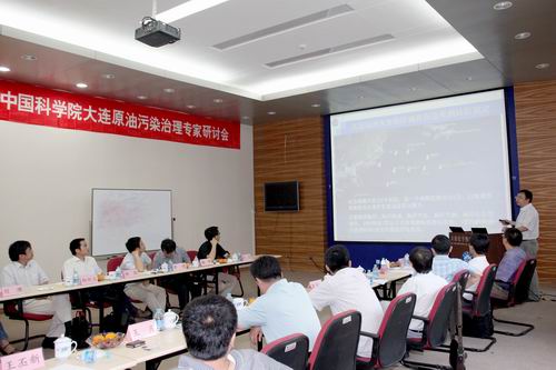为了更充分地发挥中国科学院综合技术优势,在完成初步调研和评估的基础上,沈阳分院于7月28日组织大连化物所、海洋所、生态环境中心、微生物所、长春应化所、沈阳应用生态所等单位在大连召开了“中国科学院大连原油污染治理专家研讨会”,包括包信和、江桂斌、张玉奎3位院士在内的20余位专家,以及院地合作局和长春分院相关人员参加了此次研讨会。包信和院长介绍了举办本次会议的背景情况和国外类似事故的处理措施?;嵋橛闪翰ǜ痹撼ぶ鞒?。
