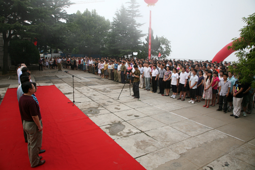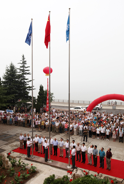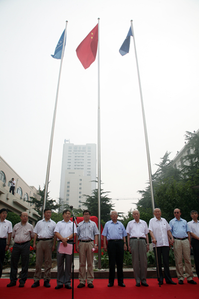 在庄严的国歌声中,国旗、院旗和所旗在充满希望的晨曦里相继冉冉升起,大家满怀深情和喜悦庄重地行注目礼。