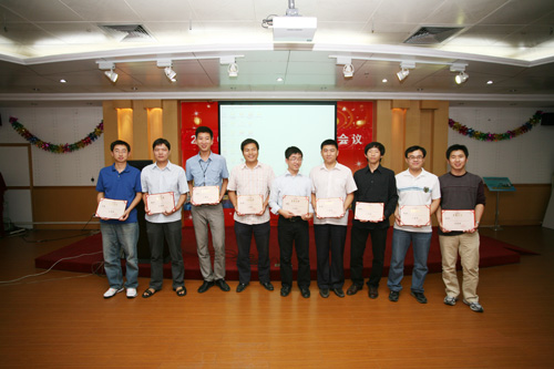 9月9日所级新职工考评在R楼4楼学术报告厅举行。来自研究室和管理支撑部门的9名优秀新职工参加了本次所级考评??计佬∽橛筛餮芯渴液凸芾碇С挪棵诺牧斓甲槌伞>?小时的汇报和展示,四室赵大威凭借优异的表现获得一等奖;二等奖被二室金文明、六室祁若龙夺得;人教处杨亮、一室李贵阳、五室李昭月获得三等奖。三室辛勇、李力刚和五室毕永生获得优秀奖。