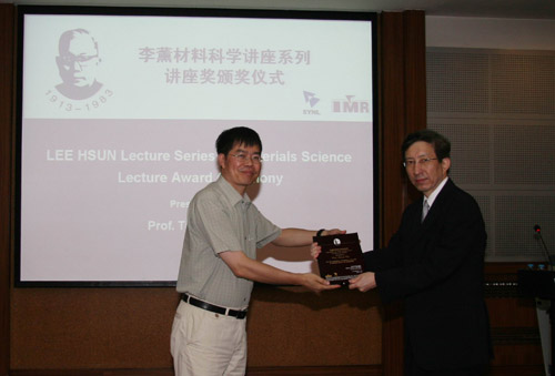 成会明常务副所长向Ohji博士颁发李薰讲座奖奖牌