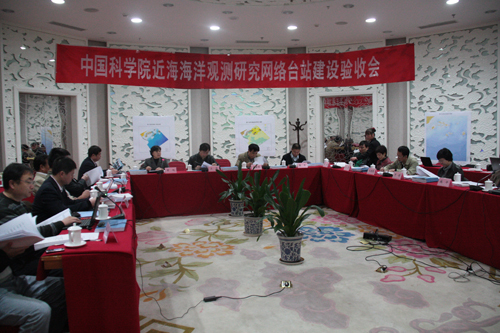 根据中国科学院创新三期中国近海海洋观测研究网络的建设要求,2010年11月3日,中国科学院资源环境科学与技术局组织有关专家在北京对海洋所承担建设的黄海海洋观测研究站(黄海站)和东海海洋科学观测浮标站(东海站)建设项目进行了验收,验收会由中国科学院资源环境科学与技术局常旭副局长主持。验收专家组组长由中国科学院资源环境科学与技术局范蔚茗局长担任,验收组成员为国家海洋局预报减灾司王华副局长、国家科技基础条件平台中心袁伟处长、中国21世纪议程管理中心孙清处长、国家自然科学基金委地学部任建国处长、海军航保部陈军处长、中科院计划财务局曹凝副局长、中科院烟台海岸带施平所长和中科院南海所张偲所长。验收专家组首先听取了项目负责人王凡所长助理的“中国近海海洋观测研究网络系统—黄海海洋观测研究站和东海海洋科学综合观测浮标站验收报告”,观看了反映项目建设和维护过程的纪录短片,通过远程登录考察了中国近海海洋观测研究网络陆基支撑数据接收系统实时数据接收情况,还认真审阅了项目验收文件、11套观测浮标系统一年来的实时观测数据汇编、区域性断面调查报告两卷、黄、东海海洋观测站初级数据产品汇编、第一、二阶段大连溢油灾害海洋环境应急调查研究分析结果、黄海海洋综合科学观测平台工程地质环境调查报告和黄、东海观测研究站建设照片集锦等文件。验收专家组成员从项目建设目标、运行管理与维护、长期连续观测与后续扩展等内容向项目组提出了质疑,并进行了充分的讨论。