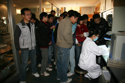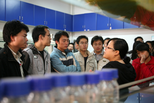 在海洋地质与环境重点实验室,同学们参观了X射线衍射分析室、海洋地球化学实验室、稳定同位素质谱分析室、海洋生物地球化学实验室、海洋地质微生物实验室等,科研人员向同学们详细介绍了仪器设备、研究内容等情况,并耐心解答了同学们的提问。