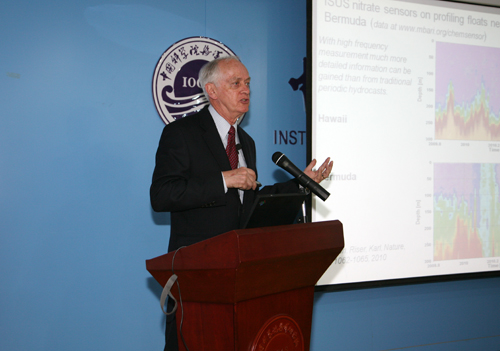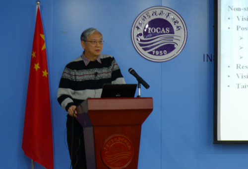 Peter G. Brewer 教授结合相关的研究成果对美国MBARI海洋研究所的海洋科学研究与技术创新结合的研究特色作了论述;George T F Wong教授介绍了台湾中央研究院环境变化研究中心的概况并就其研究所近期的研究热点进行了综述。