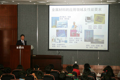活动中,金属所办公室徐岩主任向同学们介绍了研究所基本情况,钛合金研究部徐东生研究员作了题为“先进金属材料研究进展略谈”的科普报告,徐东生研究员以丰富生动的内容、风趣幽默的语言向学生们介绍了金属材料的应用领域及性能要求、材料的设计及优化方法及金属所近年来取得的重要科研成果,使同学们了解了材料学科的发展现状和金属所科技创新的工作进展,报告后同学们与徐老师进行了热烈的交流互动。随后同学们参观了沈阳材料科学国家(联合)实验室和金属所科技成果展室,金属所丰硕的科研成果、精密的仪器设备和科普自愿者们通俗易懂的讲解使同学们大开眼界,受益良多。
